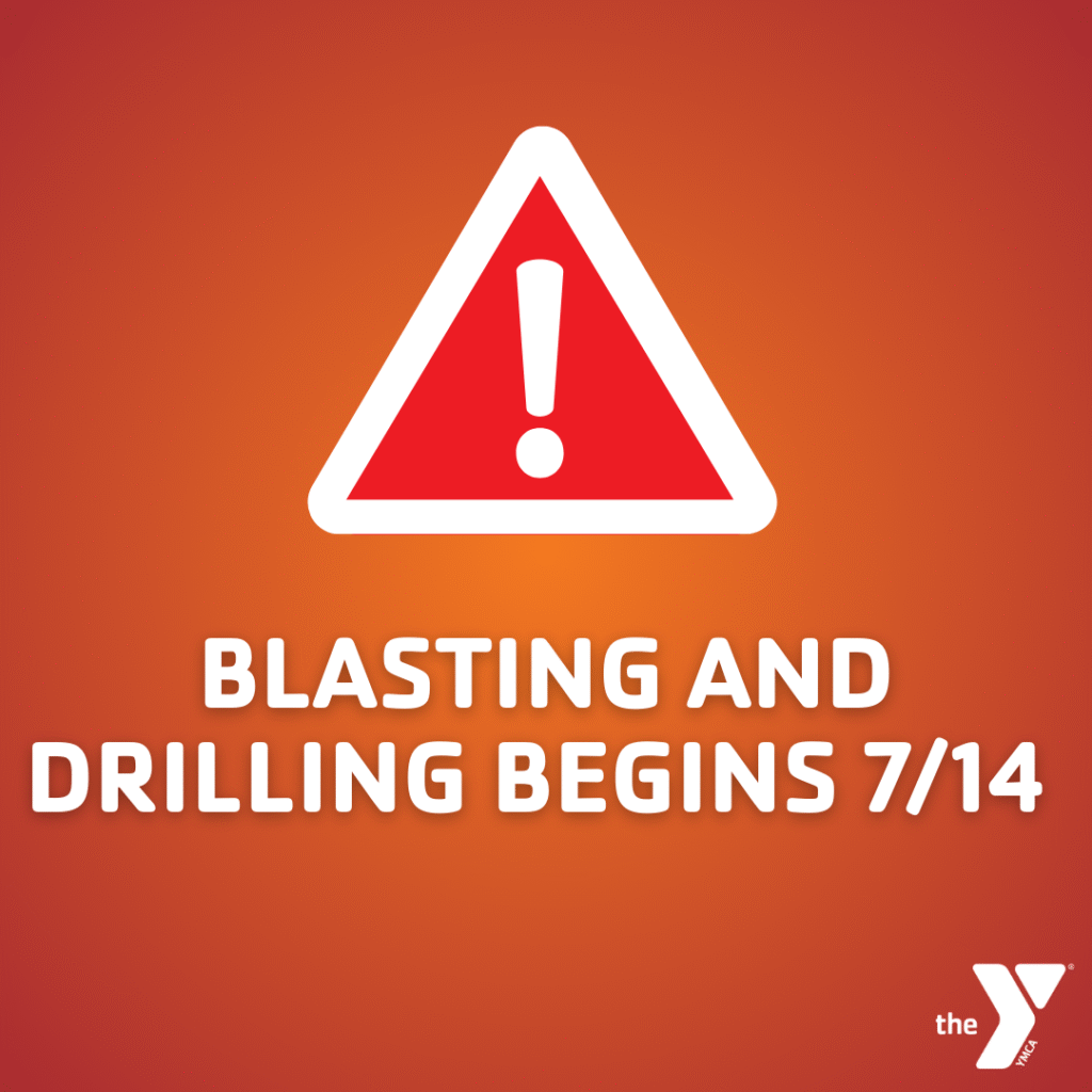 We expect blasting to take place multiple times a day beginning on Wednesday, July 16. We are working with crews to identify ideal windows of time for blasting to minimize disruption during high-volume times at our Y such as pick up and drop off. We expect blasts to take place mid-morning and mid-afternoon.
