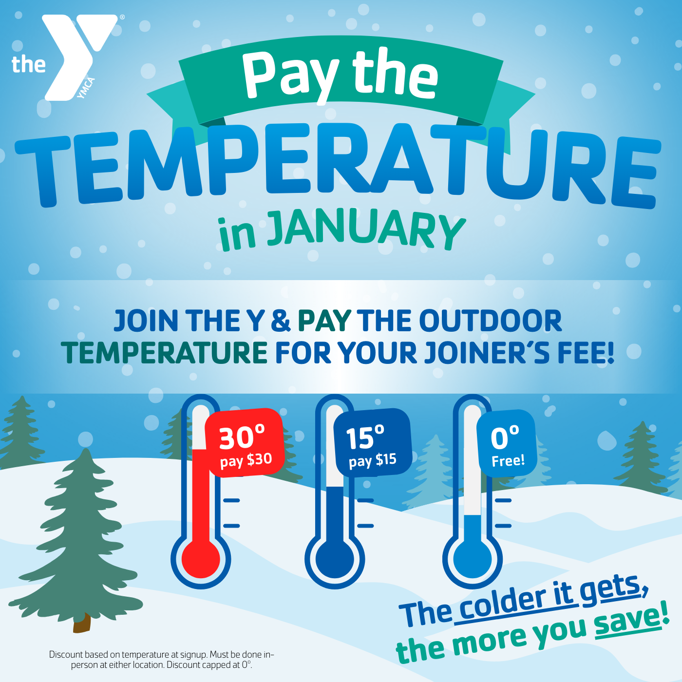 From January 2-15, sign up for a membership to the Y and save! When you sign up, your joiner’s fee is based on the temperature outside at the moment you sign up.